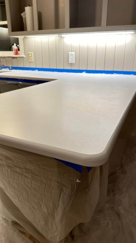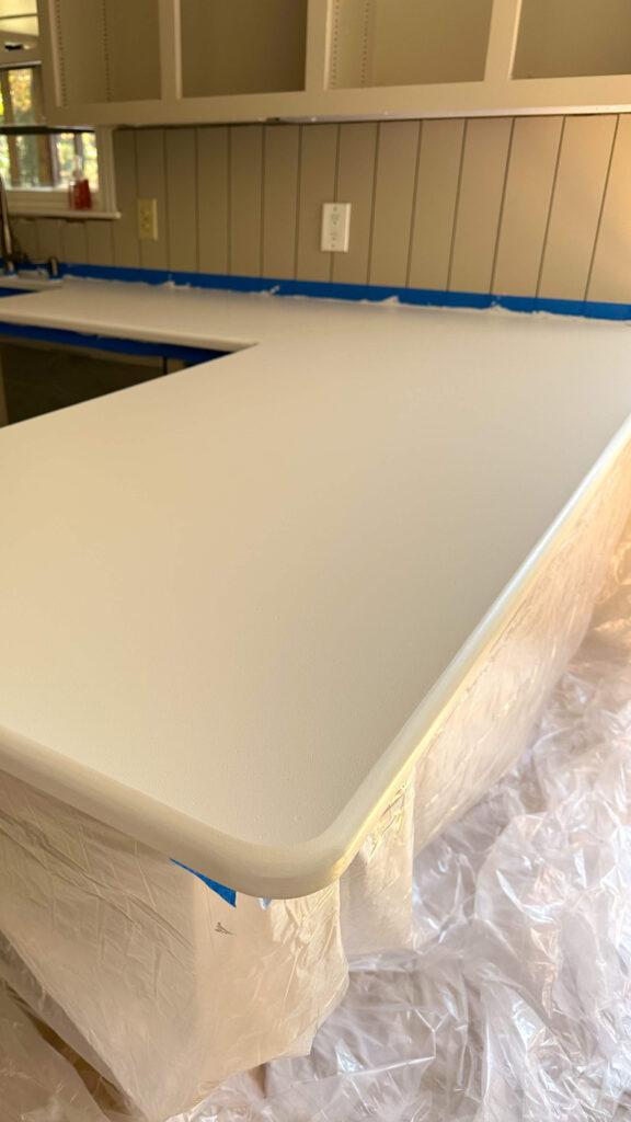 If you attempt to do this, make sure you’re thinking about the edge right underneath the counters. If you’re sitting in a room and have a line of sight to your counters, you can see the underside of them. So account for this when you’re taping and priming.