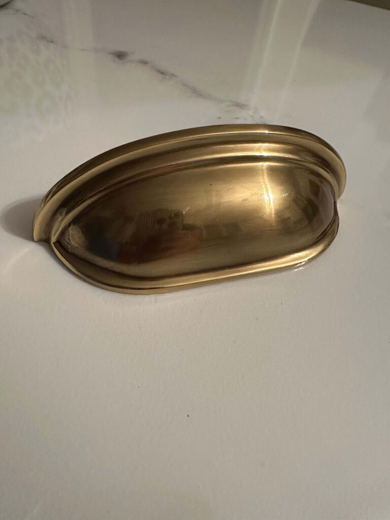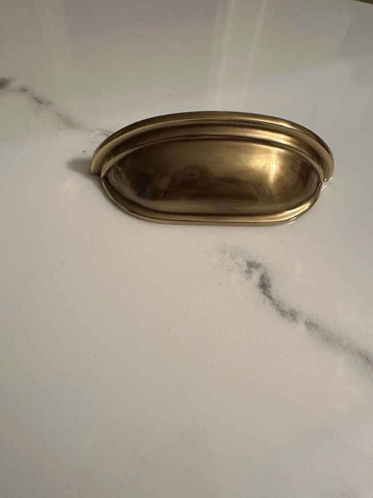 During the design process I decided to change the hardware on all of my drawers to cup pulls rather than knobs / handles I previously had. I’ve partnered with EMTEK on this and the hardware just arrived in the mail this past week! I was so excited to open the box and hold these up against the new cabinet color!