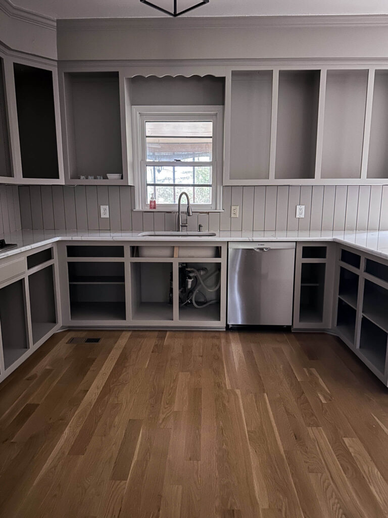 Believe it or not, this budget friendly kitchen renovation is not going to be an open concept one. So we’re back into the cycle of cleaning, sanding and painting as I tackle the doors and drawers to the cabinet boxes. I’m extra excited for this because after this is checked off, I can put things back in the cupboards and get my house back in order.