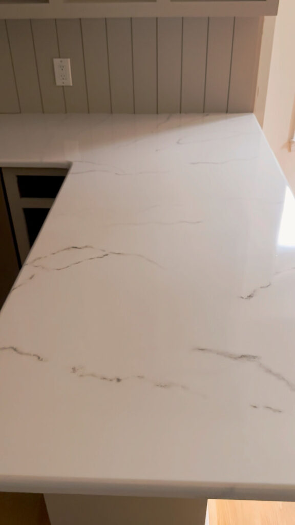 I think the results really speak for themselves! I can’t believe these are the same countertops! And I also can’t believe the results I achieved by using a kit that cost $200 vs spending $8k-$10k for real marble! I’m thrilled with how the counters are complimenting the new cabinet color and backsplash, and I know everything is really going to come together once I get the pendant lights installed as well as the brass hardware.