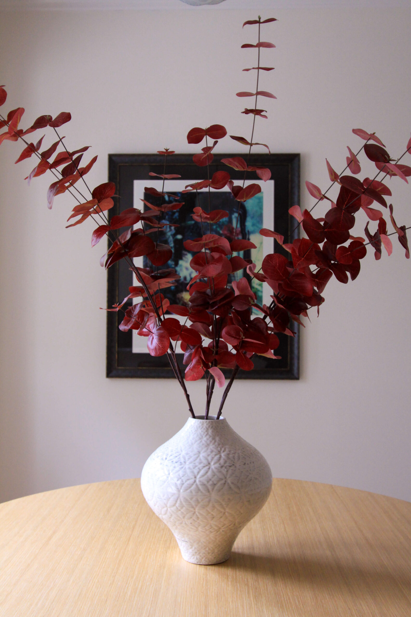 Sources: Crate & Barrel Geo Vase | Tall Burgundy Eucalyptus Stem (similar) (3 total)