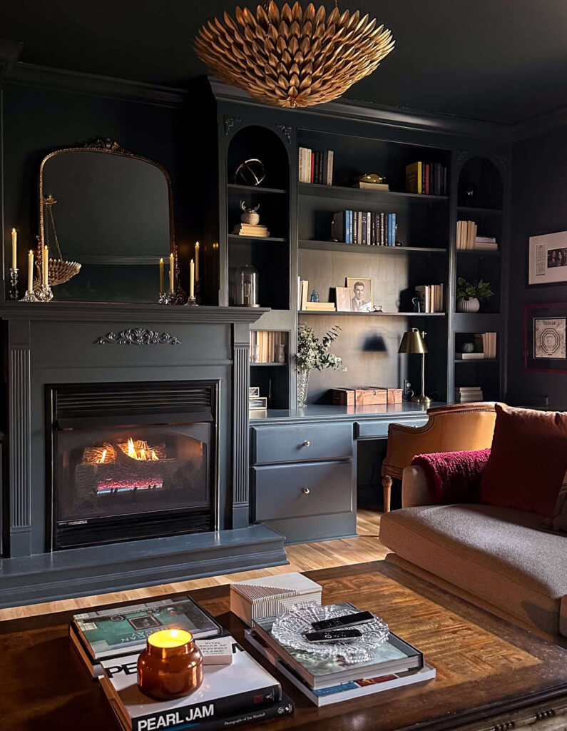 With how much this room had already evolved up until this point, I felt like it was time to take a design risk and try my hand at color drenching. I was a little bit nervous about the new paint (ceiling, trim and walls) matching the existing built-ins, as paint does fade over time, but it turned out seamlessly and I am absolutely in love with the final result!