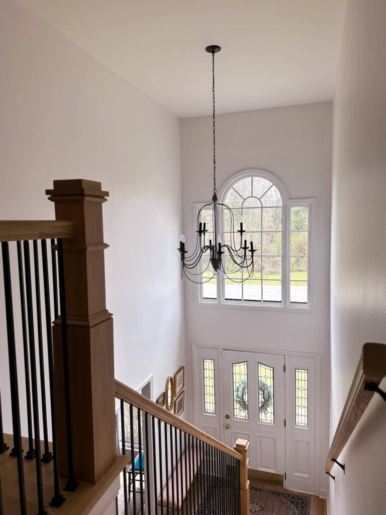 I knew I wanted black balusters. I love the contrast they bring to the table with the white oak floors. The unknown part that I struggled with was what size – there were thick balusters and thin balusters. Due to code, I needed to have three balusters per step (so children can’t put their heads through the balusters). My previous staircase was not done to code, so I had a hard time visualizing if the wider balusters I wanted were going to look too busy due to needing so many per step. The other option was to go with a thinner baluster, however I was worried that would create a modern feel which is what I didn’t want. Winner: thick black metal balusters.