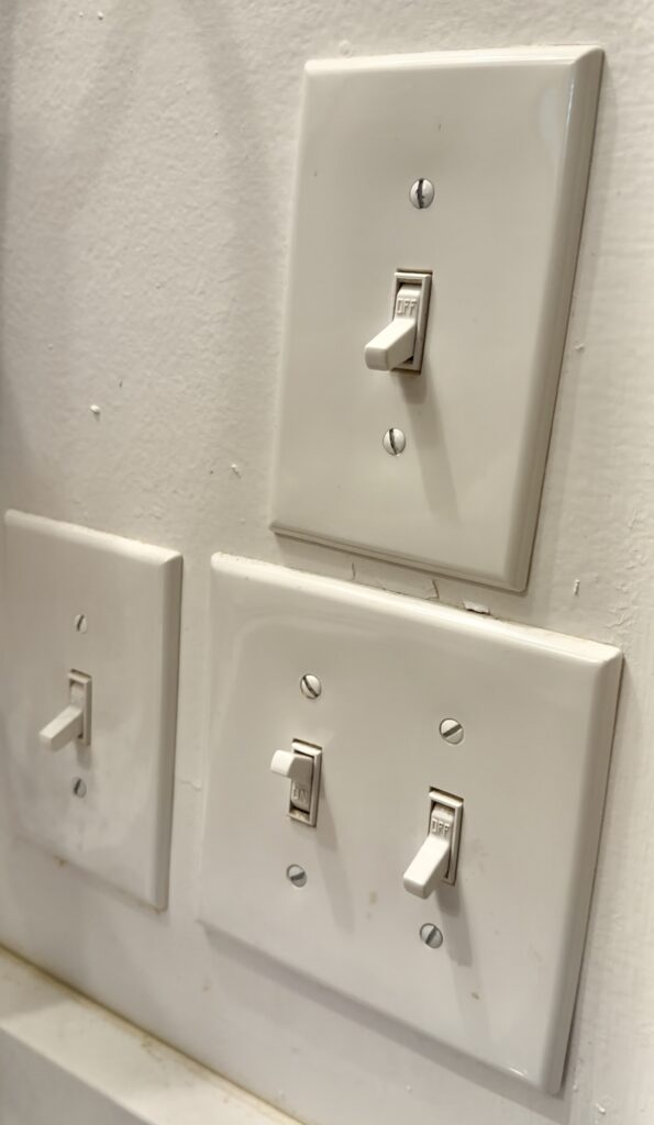 - Upgraded light switches to a vintage inspired toggle switch plate