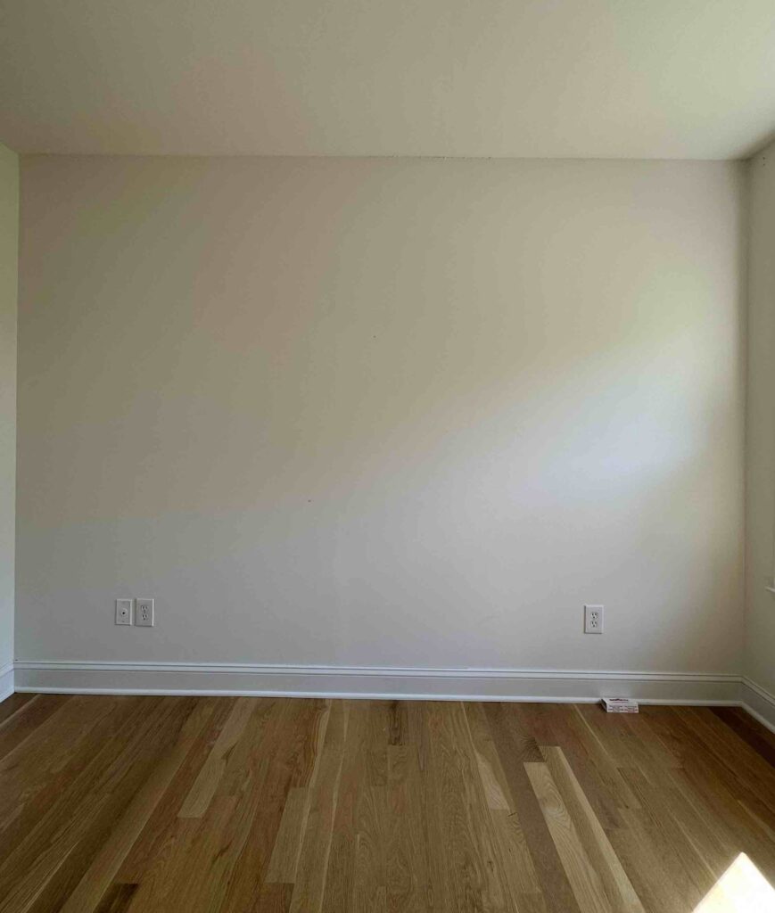 Before getting into how to design picture frame molding, I first needed to determine where my chair rail would sit. This room didn’t have any existing trim, so I started from scratch using one of my favorite design rules: the rule of thirds.