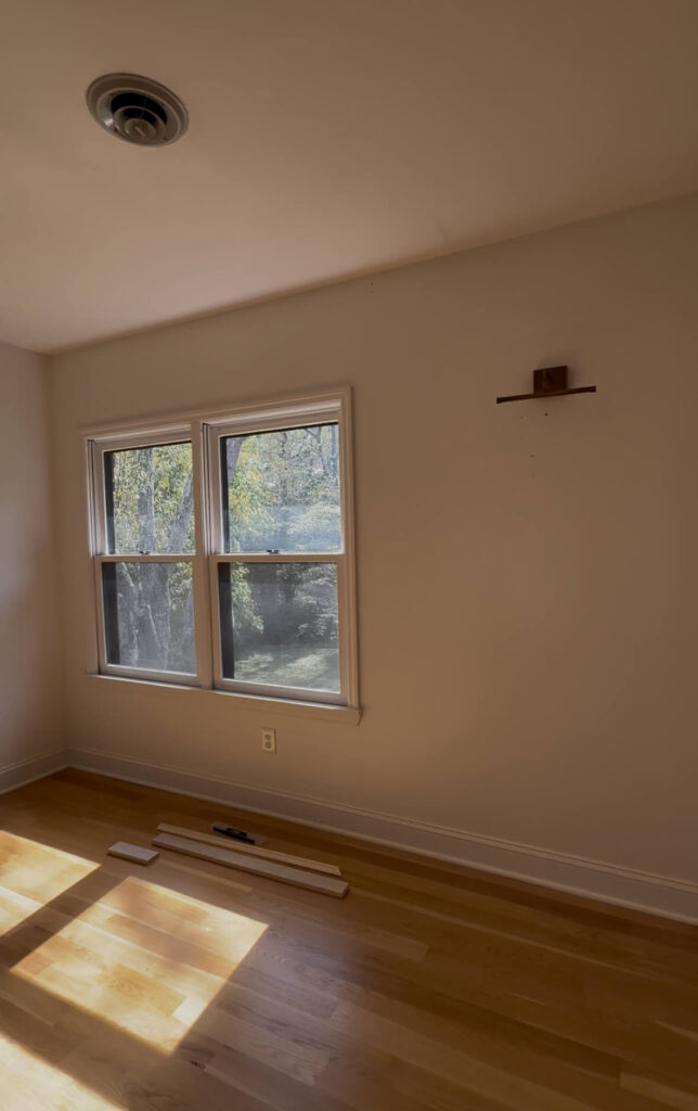 My ceilings are eight feet tall (96 inches), so I divided that by three to get 33 inches. Then, since I plan to add a chunky crown molding later, I decided to drop the chair rail one inch lower. That means the top of my chair rail sits at 32 inches from the floor, creating perfect visual balance for an 8-foot room while allowing the upper wall to have its own moment, especially since I plan to add wallpaper above the molding.